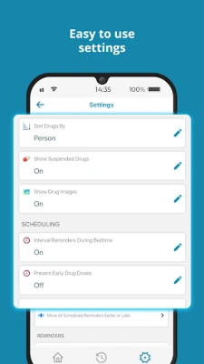📝 CUSTOMIZABLE DOSE AMOUNTS AND INSTRUCTIONS: Set the drug name, dosage information, directions, and notes that appear in the reminders for each dose. You can also track each drug's expiration date.
