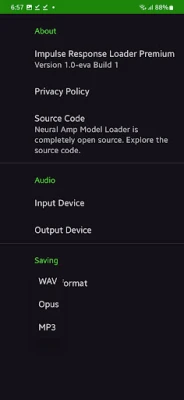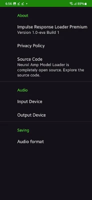 Features - Supports .wav Impulse Response files with resample support - Low(est possible) Latency on Android - Floating point audio processing at native device sample rate - Record audio to MP3, Opus and Wav format - Unlimited recording support - USB OTG Audio Interface and USB Soundcard Support - No Ads - Open Source - Made with ❤