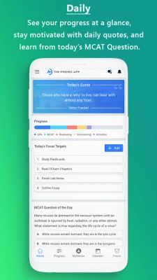 • Daily – Set your goals for the day, find motivation, learn something from the MCAT Question of the Day.