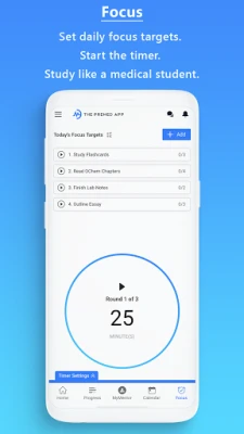 • Focus – Inspired by the study techniques of medical students, this scientifically-proven productivity tool will keep you fresh and focused so you can study longer and more efficiently.