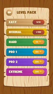◆ There are six different levels: easy, normal, hard, pro 1, pro 2, and extreme. In order to unlock them all, you need to collect the required number of stars. Do that by passing levels and unlocking them at the same time.